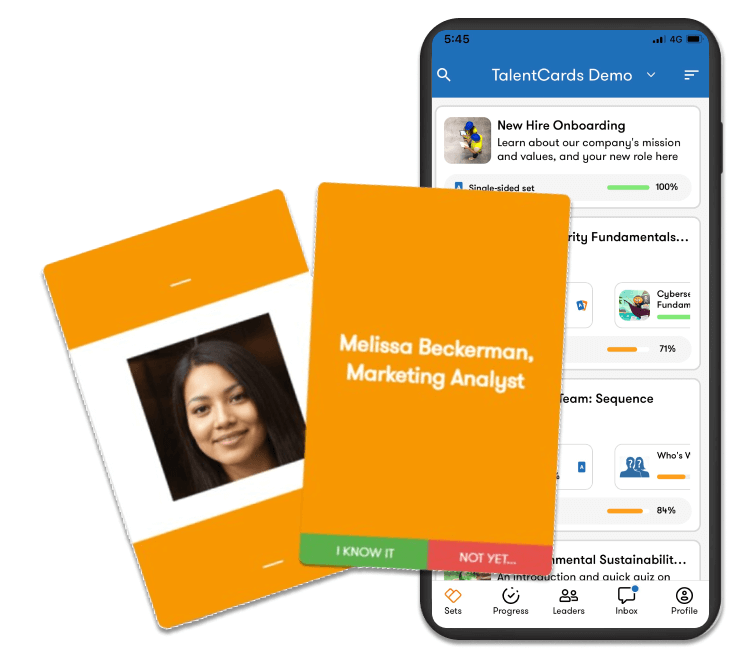 Best of all, you can use these flashcards to train employees on more than just their colleagues’ names and faces. This method of presenting info works really well for product training and compliance training.